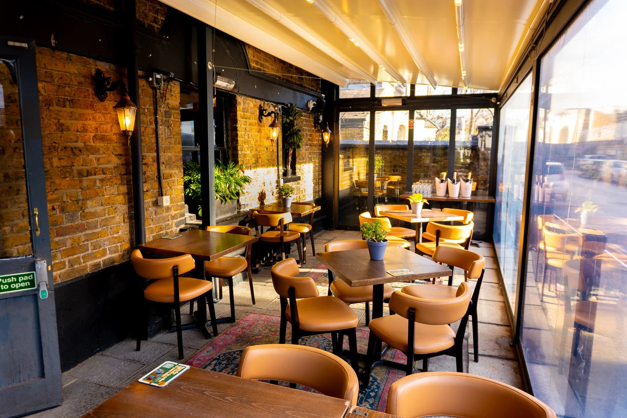 Terrace: Heated, Private room, Seated capacity: 25, standing capacity: 40, weekday min spend £100, weekend min spend £250